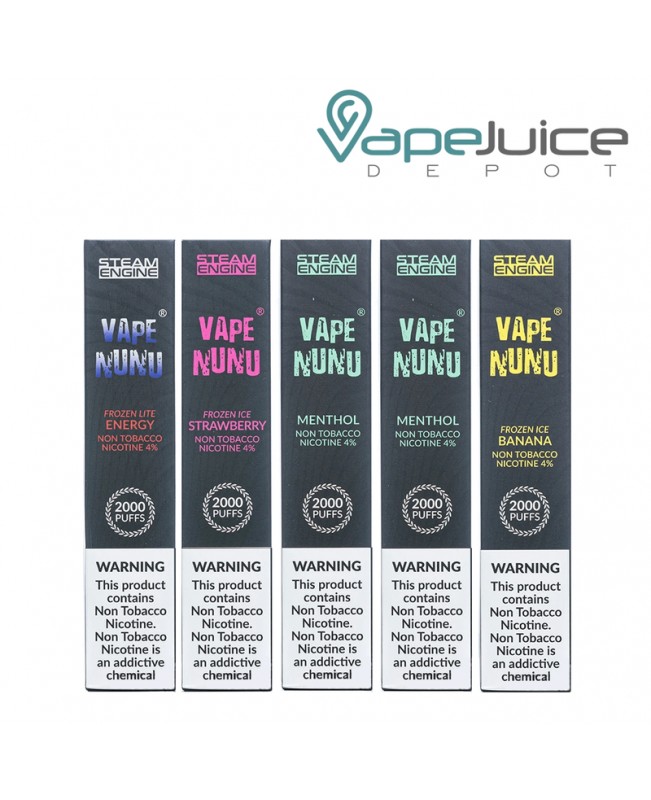 Vape Nunu Disposable (previously called Vape Monster), designed by Steam Engine, arrives with an 850mAh built-in rechargeable battery. Amazingly, this draw-activated and lightweight stick is one of those that can be charged. Offered in 16 impressive options and colors, perfectly matching the pre-filled vape juice texture, Vape Nunu Disposables provide up to 2000 delicious puffs. They also introduce an anti-leak-proof design.